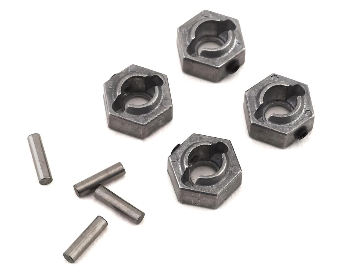 Arrma 12mm Metal Wheel Hex Set. These are replacements for the Arrma Granite, Big Rock and Senton 4×4 and 3S BLX models. Package includes four wheel hexes with retaining screws and four cross pins.