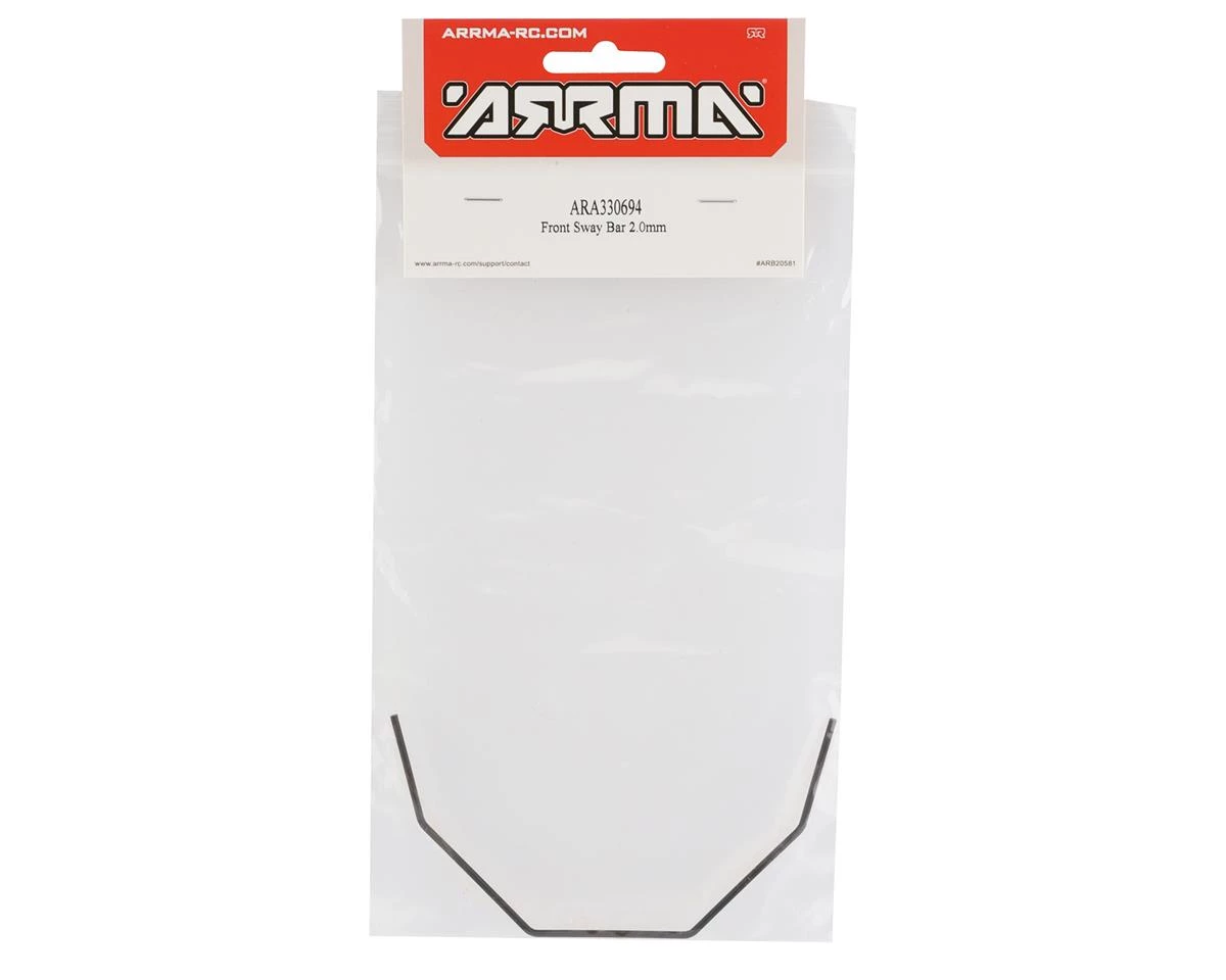 Arrma 2.0mm Front Sway Bar. This is an optional accessory intended to fit various Arrma vehicles. These sway bars are available in several different thicknesses to suit your preference. Package includes one front sway bar.