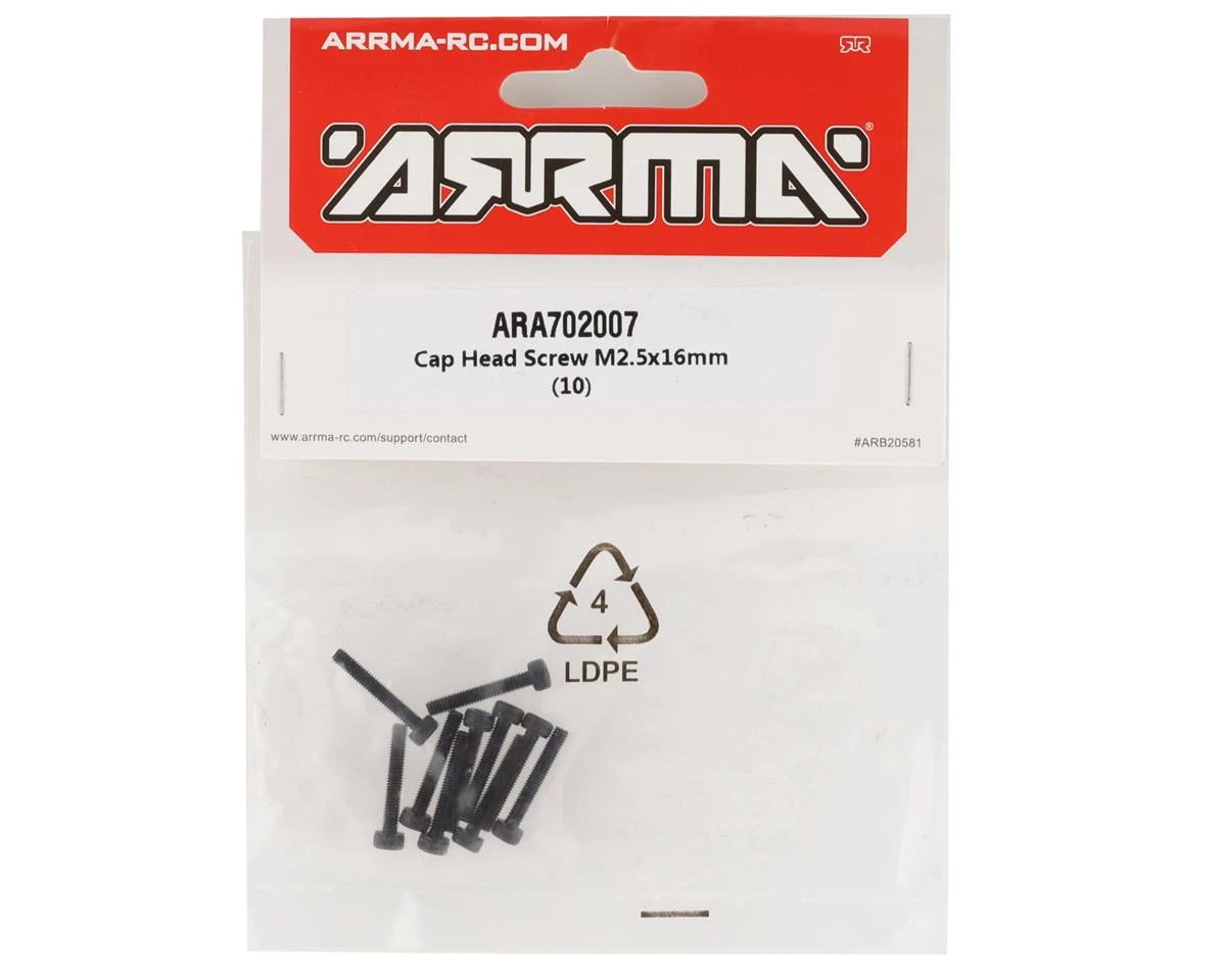 Arrma 2.5x16mm Cap Head Screw. These replacement screws are intended for the Arrma Fireteam 6S BLX. Package includes ten screws.