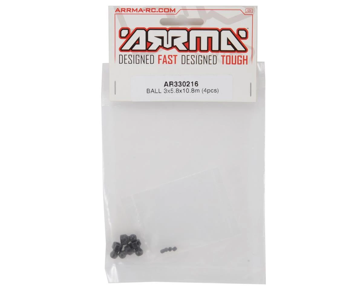 This is a pack of four replacement Arrma 3×5.8×10.8mm Balls. These balls are used with the sway bars. Package also includes four set screws.