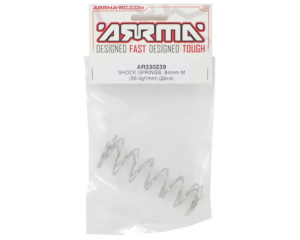 This is an optional Arrma Shock Spring Set. These springs are 84mm long and rate 56.6gf/mm; the higher this number is, the stiffer the Shock Spring is under compression; the lower this number is, the softer the Shock Spring is under compression.