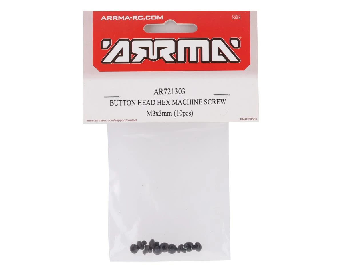 This is a replacement pack of ten Arrma 3x3mm Button Head Hex Machine Screw, high-quality steel Pins that are the perfect spare part to carry in your RC tool box.