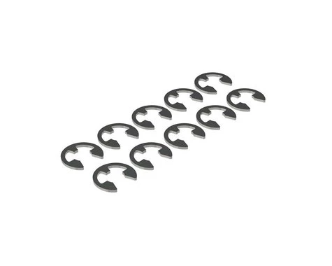 Arrma E-4 E-Clips. These E-clips are made from a strong, hard-wearing, material for added strength and security. Package includes ten E-clips.