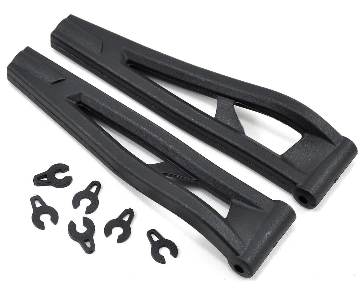 This is a pack of two replacement Arrma Front Upper Suspension Arms. This package also includes caster clips.