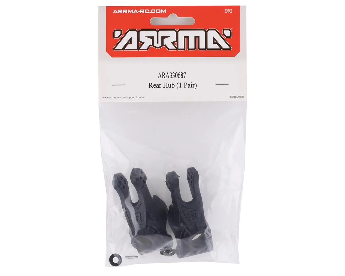 Arrma Infraction Mega/Vendetta 3S BLX Rear Hub. These replacement rear hubs are intended for the Arrma Infraction Mega 4×4 or the Vendetta 3S BLX. Made from a strong composite material, these are great for withstanding the most extreme RC action. Package includes two rear hubs.