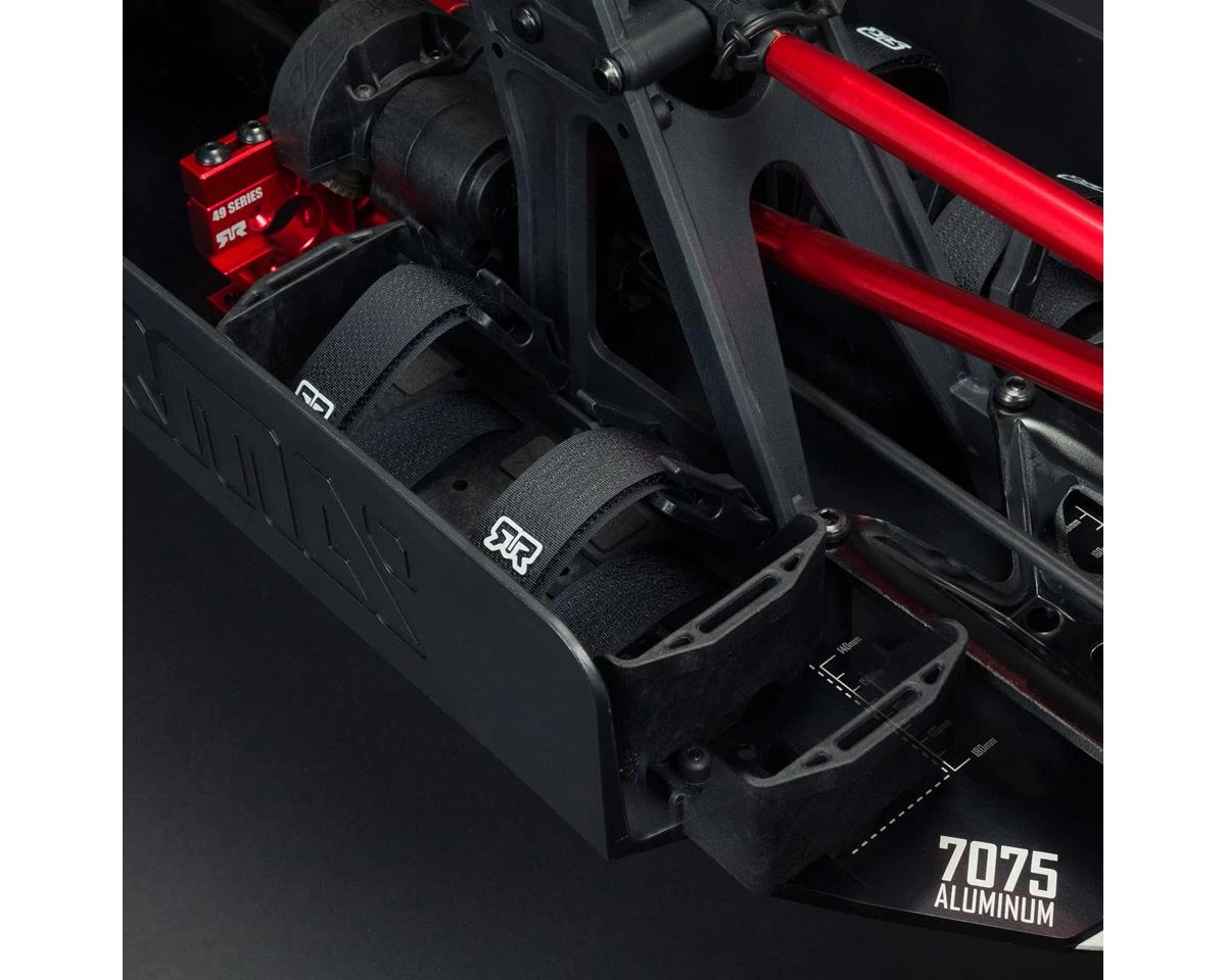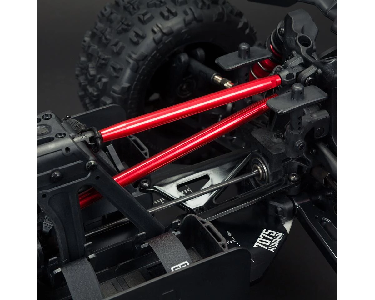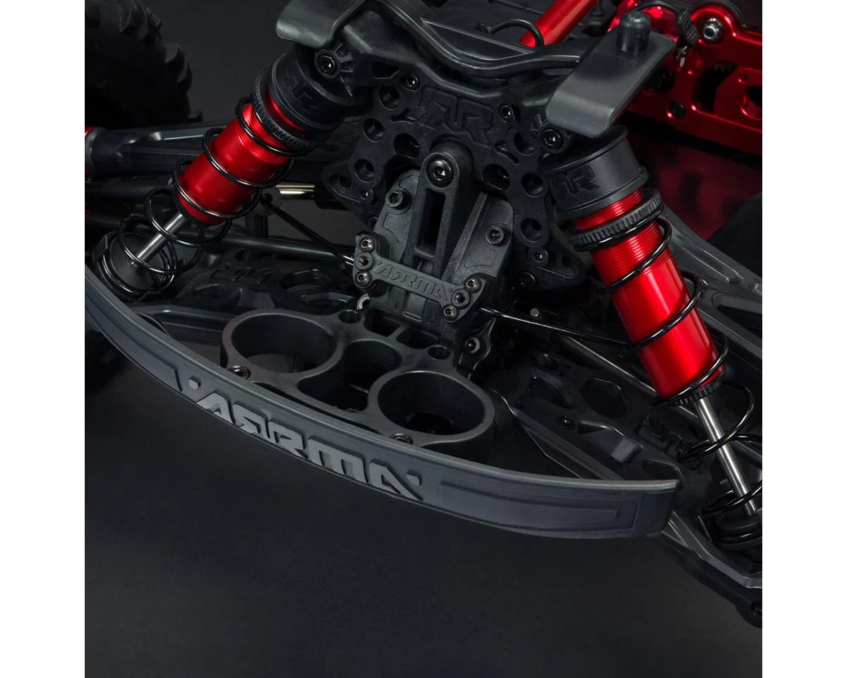 A center body support, aluminum center braces and composite chassis side pods add more strength. All-metal diff outdrives and gearbox internals, plus durable steel driveshafts, provide a reliable, heavy-duty drivetrain that holds up to extreme, high-speed bashing.