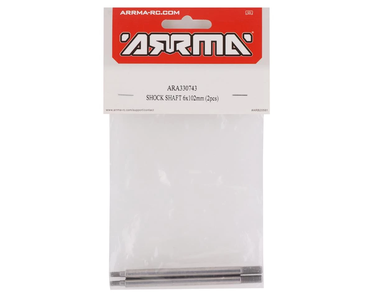 Arrma Kraton 6x102mm Rear Shock Shaft. These replacement front shock shafts are intended for the Arrma Kraton 8S Roller EXB. Made from 6mm thick stainless steel, these are designed to provide a long lasting finish in all conditions. Package includes two rear shock shafts.