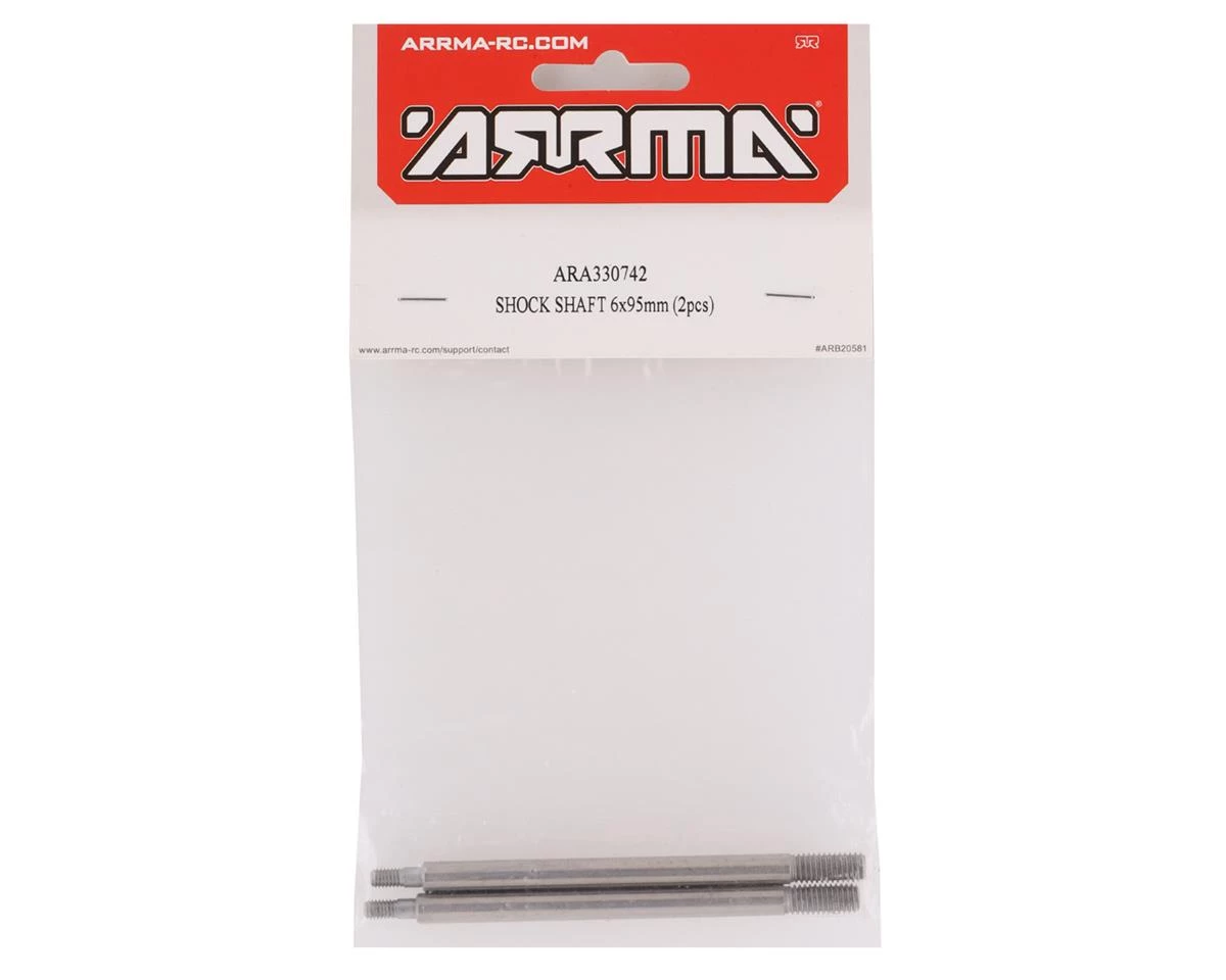 Arrma Kraton 6x95mm Front Shock Shaft. These replacement front shock shafts are intended for the Arrma Kraton 8S Roller EXB. Made from 6mm thick stainless steel, these are designed to provide a long lasting finish in all conditions. Package includes two front shock shafts.