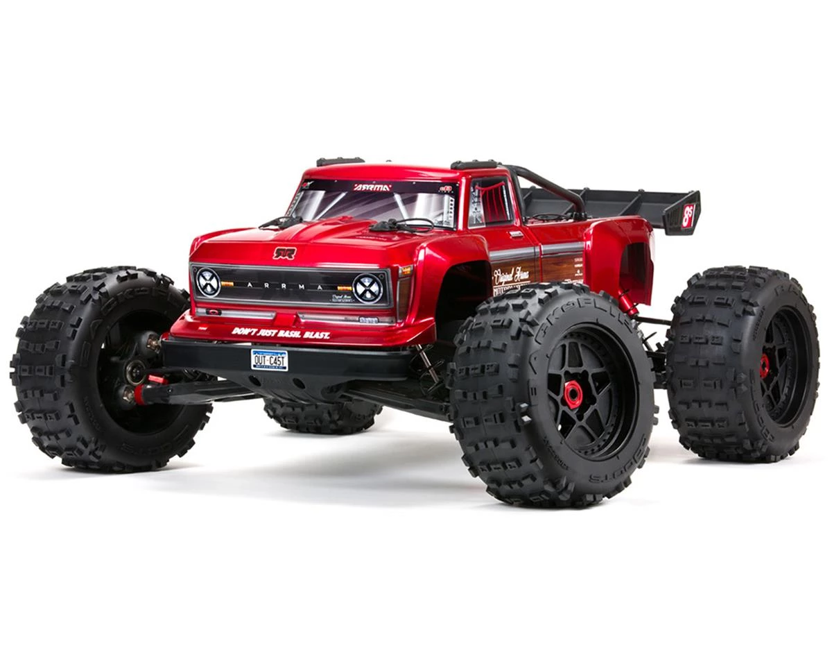 The Arrma Outcast 8S BLX Brushless RTR 1/5 4WD Stunt Truck features HUGE 8S brushless power and an ARRMA-tough design that delivers the torque, acceleration and speed necessary for extreme 1/5 scale performance. This ready-to-run monster is equipped to defy gravity – right out of the box! This machine is engineered for fun, and is setup to pull off long wheelies, crazy donuts, standing backflips, big air and more — over any terrain, in any conditions.