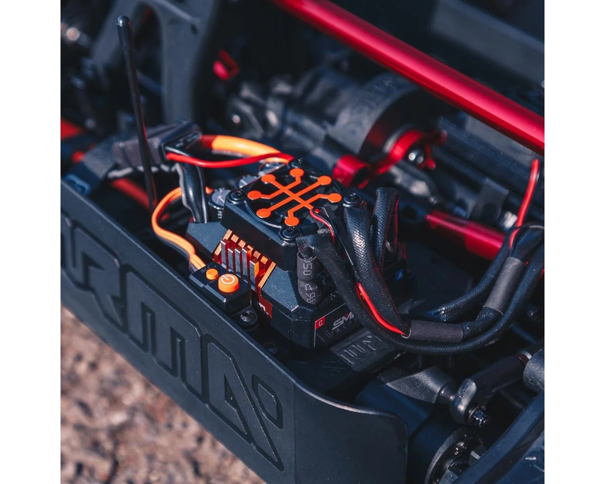 Just add your batteries and charger and go. The OUTCAST 1/5 8S BLX 4WD includes a Spektrum DX3 Smart transmitter and SRS6110AT AVC (Active Vehicle Control) receiver that take full advantage of the Spektrum Smart Firma brushless motor and ESC’s innovative telemetry capabilities. Download the free Spektrum Dashboard App to your mobile device and follow motor RPM, ESC temperature, battery voltage, and other critical data in real-time.