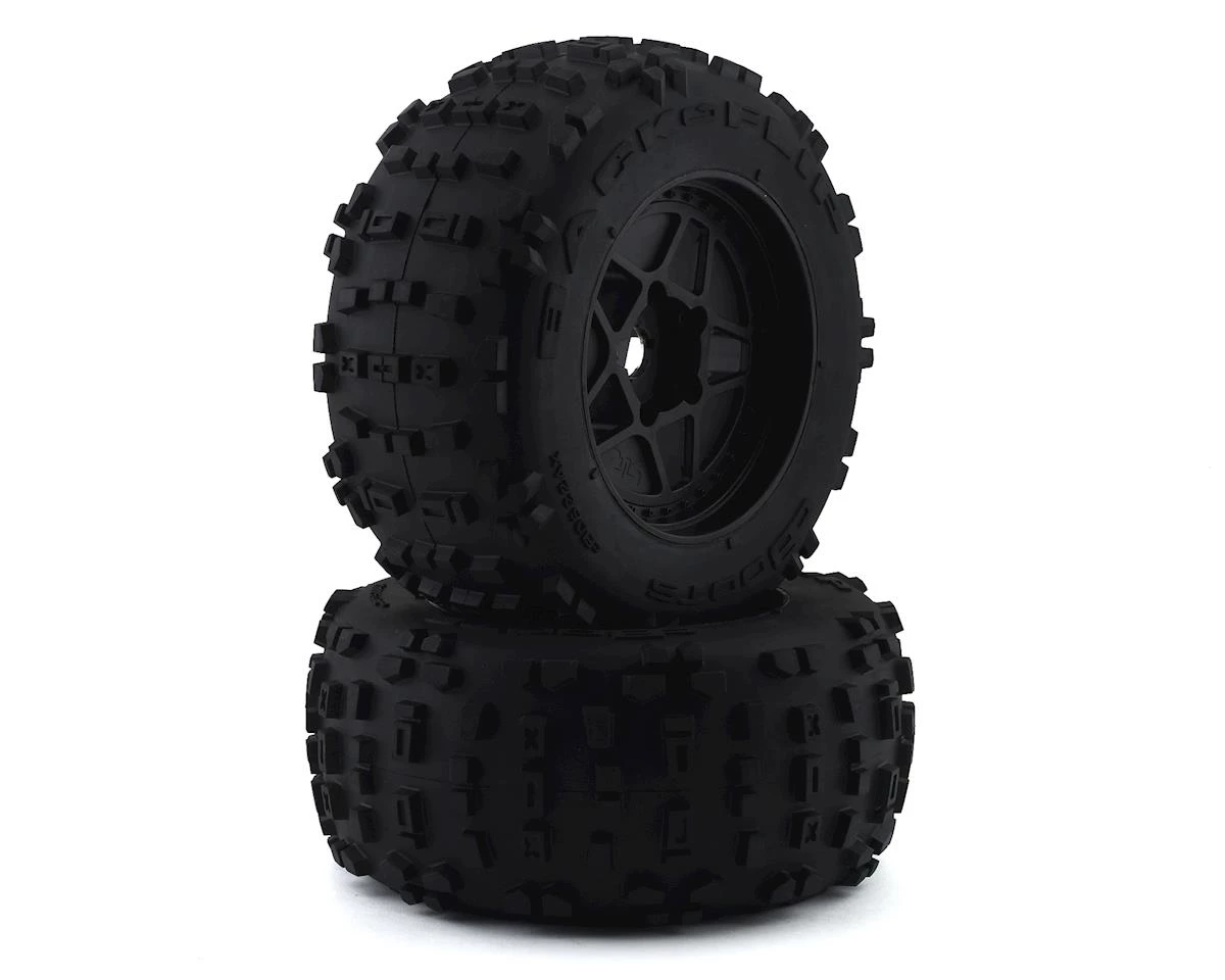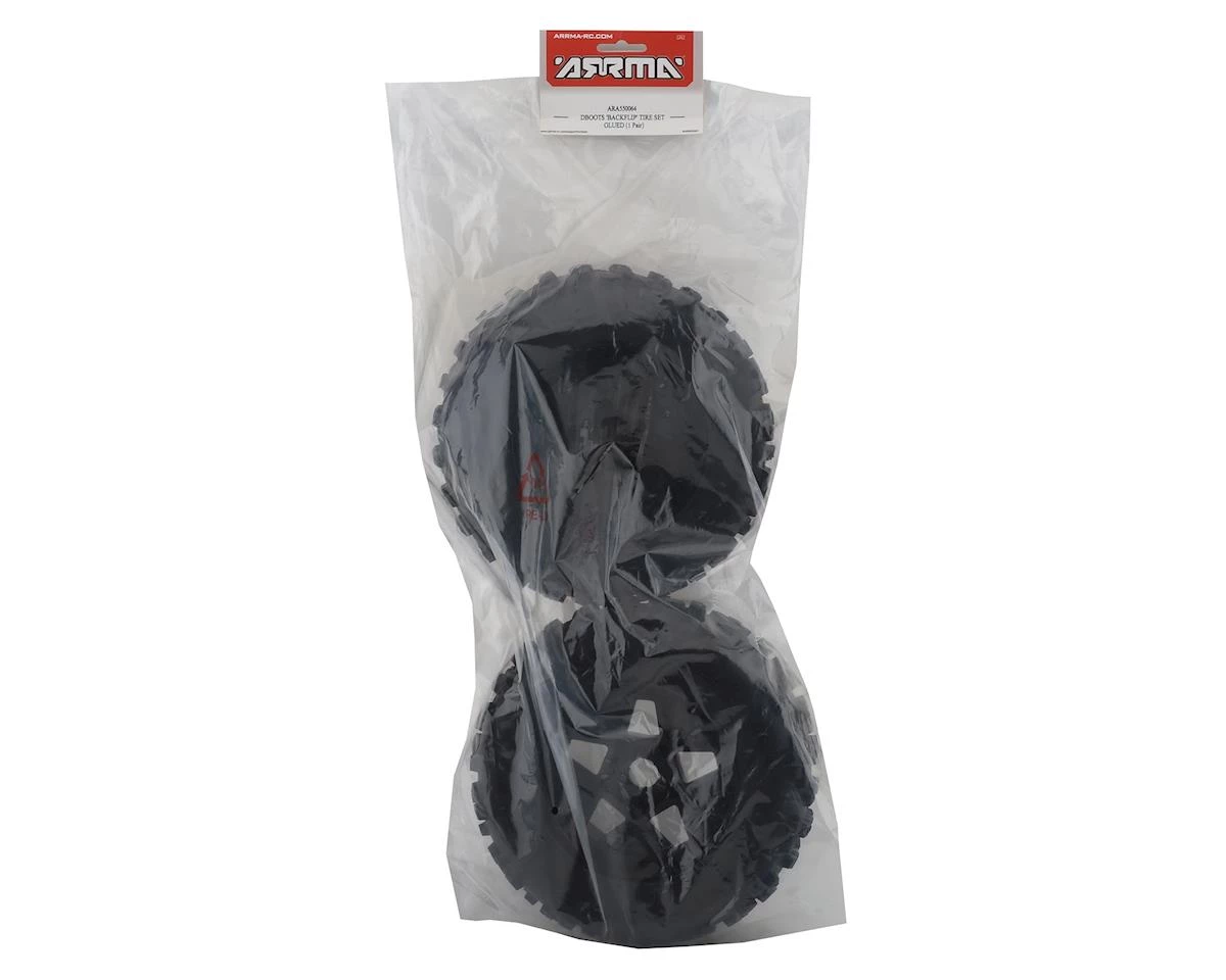 This is a set of two Arrma dBoots Backflip Pre-Mounted Tires, intended for use with the 8S-BLX Outcast kit. These are direct replacements for the stock items to provide optimum performance on a wide range of surfaces.