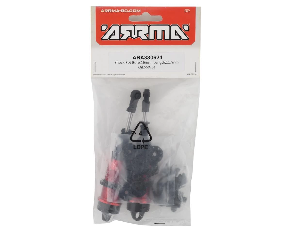 This is a replacement Arrma Rear Shock Set, intended for use with the Arrma BLX Typhon kits. This Shock Set provides a pair of assembled shock absorbers filled with high-quality silicone shock oil for fast and efficient shock replacement on your vehicle.